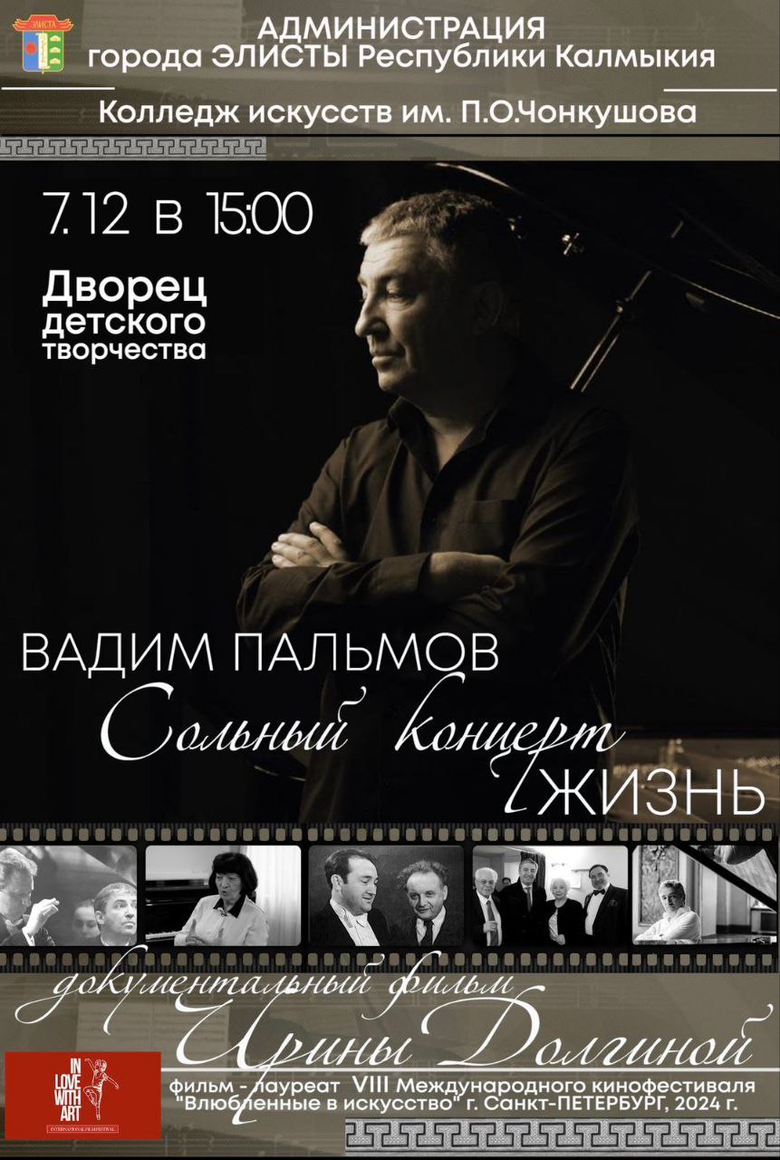 7 декабря в 15:00 во Дворце детского творчества состоится презентация документального фильма режиссера Ирины Долгиной «Вадим Пальмов. Сольный концерт Жизнь»