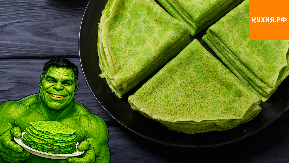 Главный ингредиент этих блинов — шпинат. Именно он придаёт им насыщенный цвет и делает полезными для здоровья. Блины получаются такими же яркими, как их «супергеройское» вдохновение, и идеально подходят для тех, кто предпочитает начинать день с чего-то легкого и полезного.