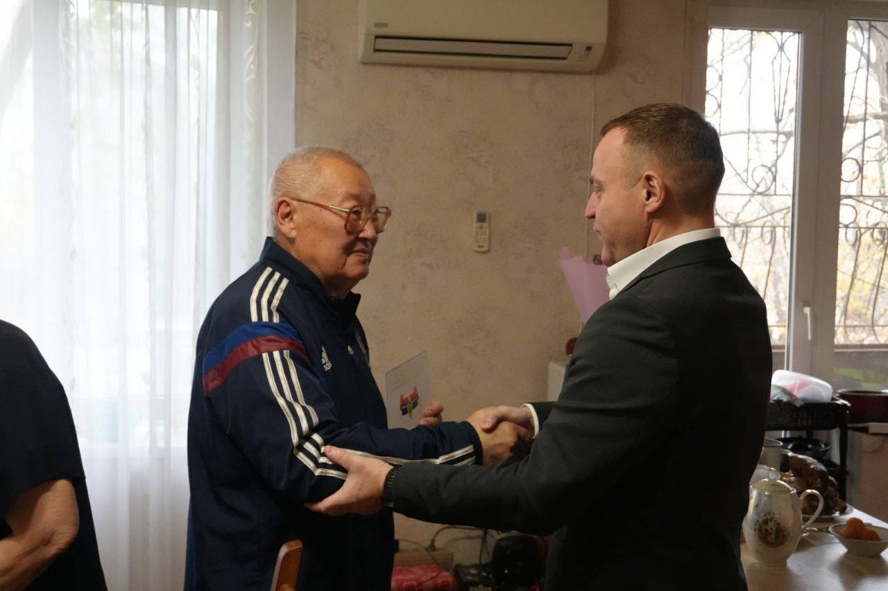 Поздравить заслуженного ветерана прибыли министр внутренних дел республики Дмитрий Григорьев и врио заместителя министра Александр Буваев.