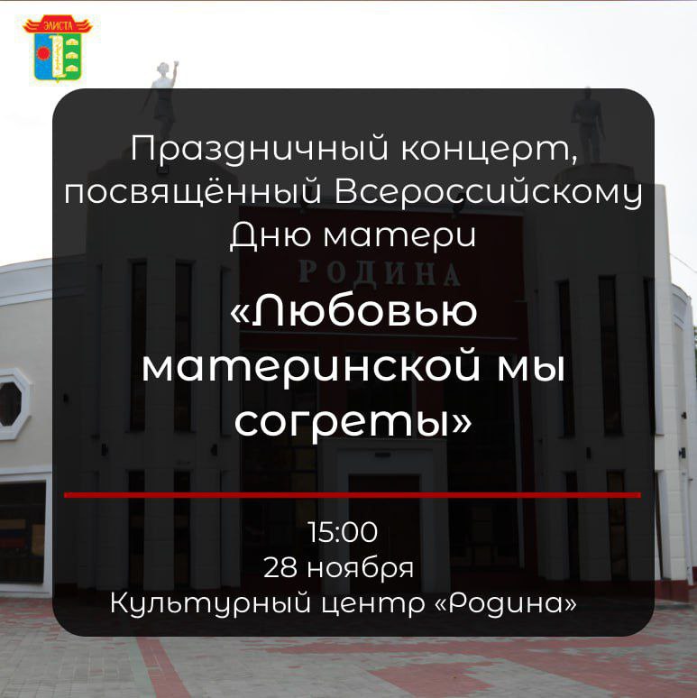 Сегодня на площади возле культурного центра «Родина» пройдет концерт «Любовью материнской мы согреты», посвящённый Всероссийскому Дню матери