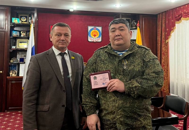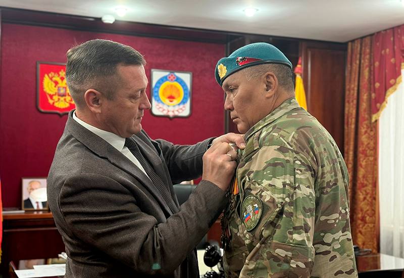 Накануне в Элисте состоялась торжественная церемония. По поручению Главы Калмыкии спикер парламента Артем Михайлов вручил одну из высших региональных наград — медаль Эрдни Деликова участнику СВО Николаю Одгаеву и ветерану СВО Владимиру Манджиеву.
