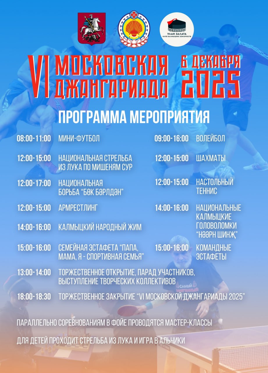 Клуб калмыцких землячеств «Улан Залата» и Постоянное Представительство Республики Калмыкия при Президенте Российской Федерации приглашают вас стать частью грандиозного события – VI Московской Джангариады-2025