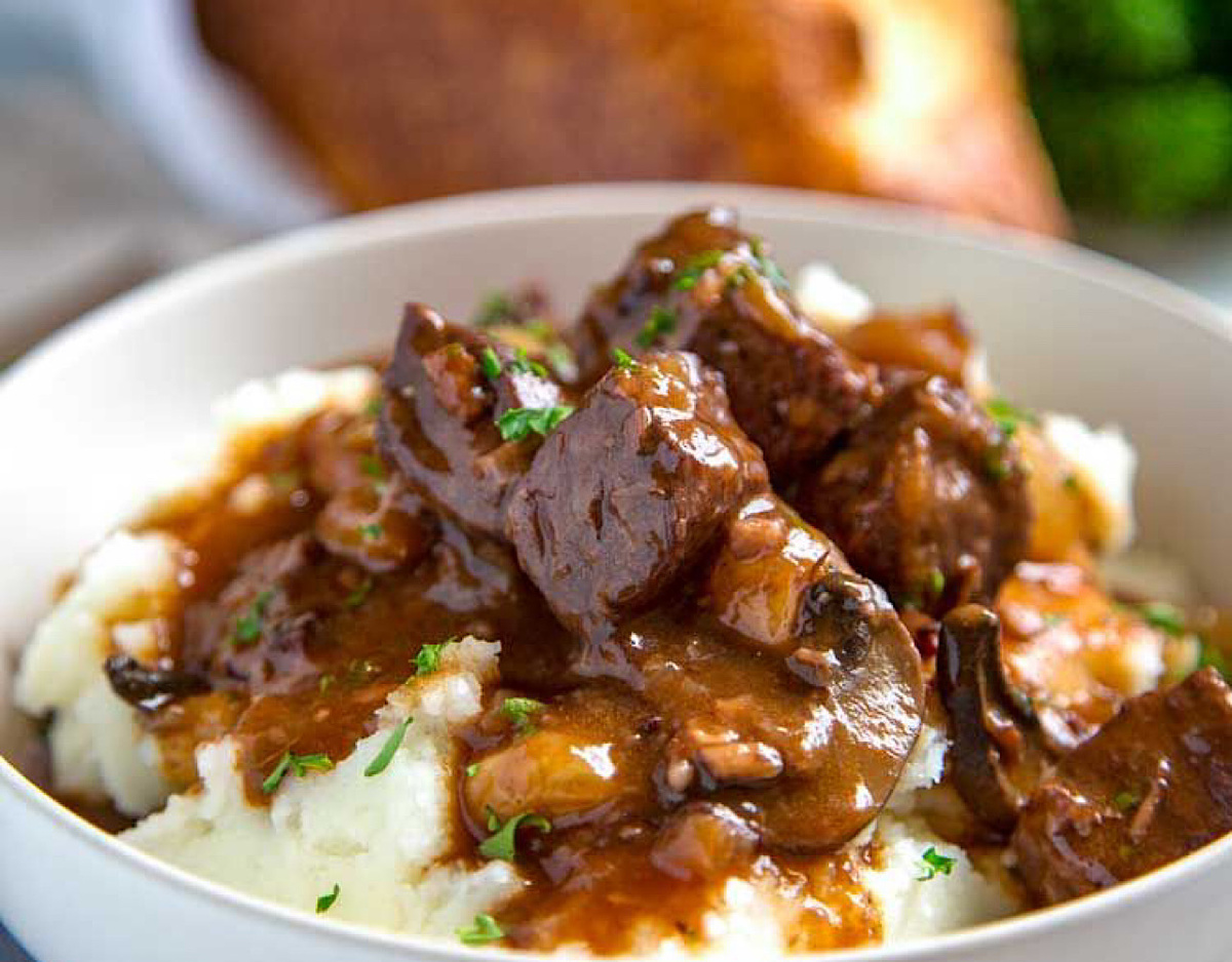 Беф бургиньон, подаваемый с отварным картофелем, пастой или свежим багетом, станет великолепной точкой в зимнем ужине, который оставит незабываемые впечатления.