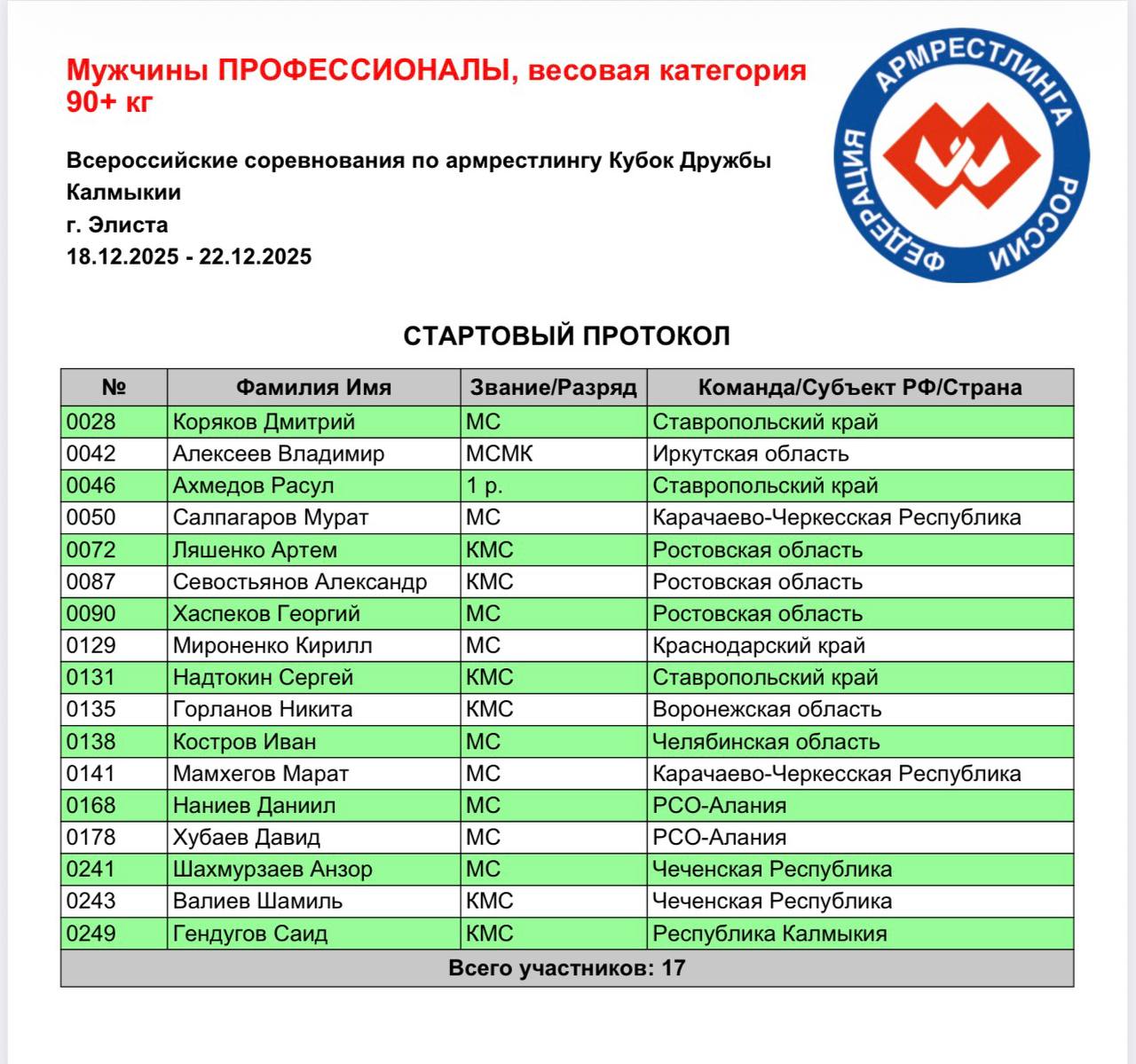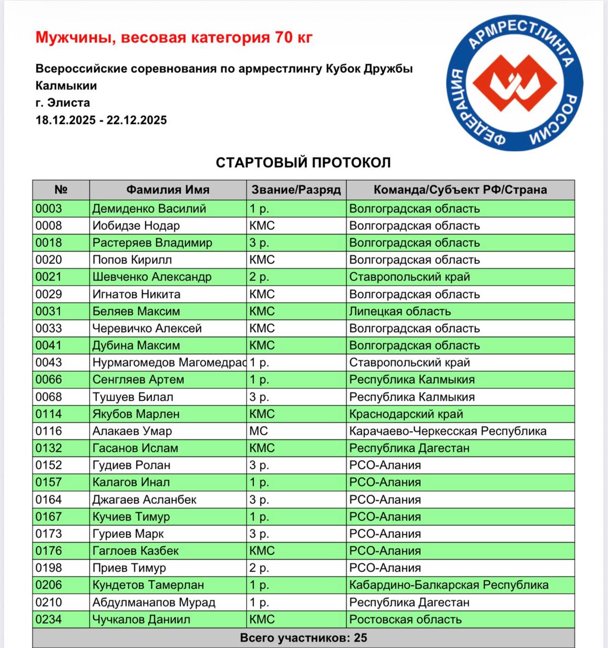 В заявке — 25 атлетов из разных регионов страны, каждый из которых приехал не просто бороться, а доказывать своё право быть сильнейшим и отобраться на Чемпионат России 2026.