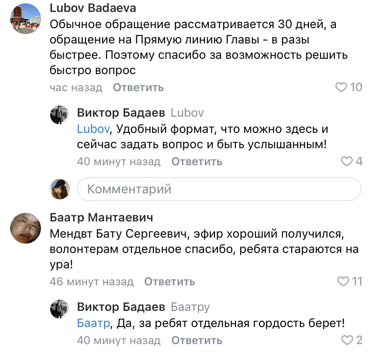 В комментариях под Прямой линией в ВКонтакте активно пишут неравнодушные жители Калмыкии