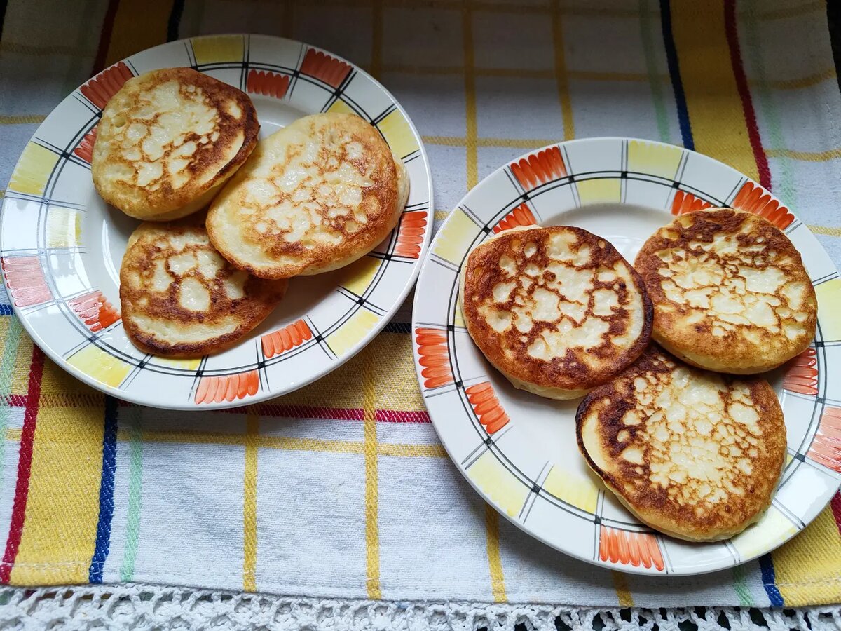 На разогретую сковороду с небольшим количеством масла выкладываются порции теста с помощью ложки. Оладьи готовятся на среднем огне, переворачивая их для равномерного подрумянивания с обеих сторон. Обычно из указанного количества ингредиентов получается около десяти аппетитных творожников.