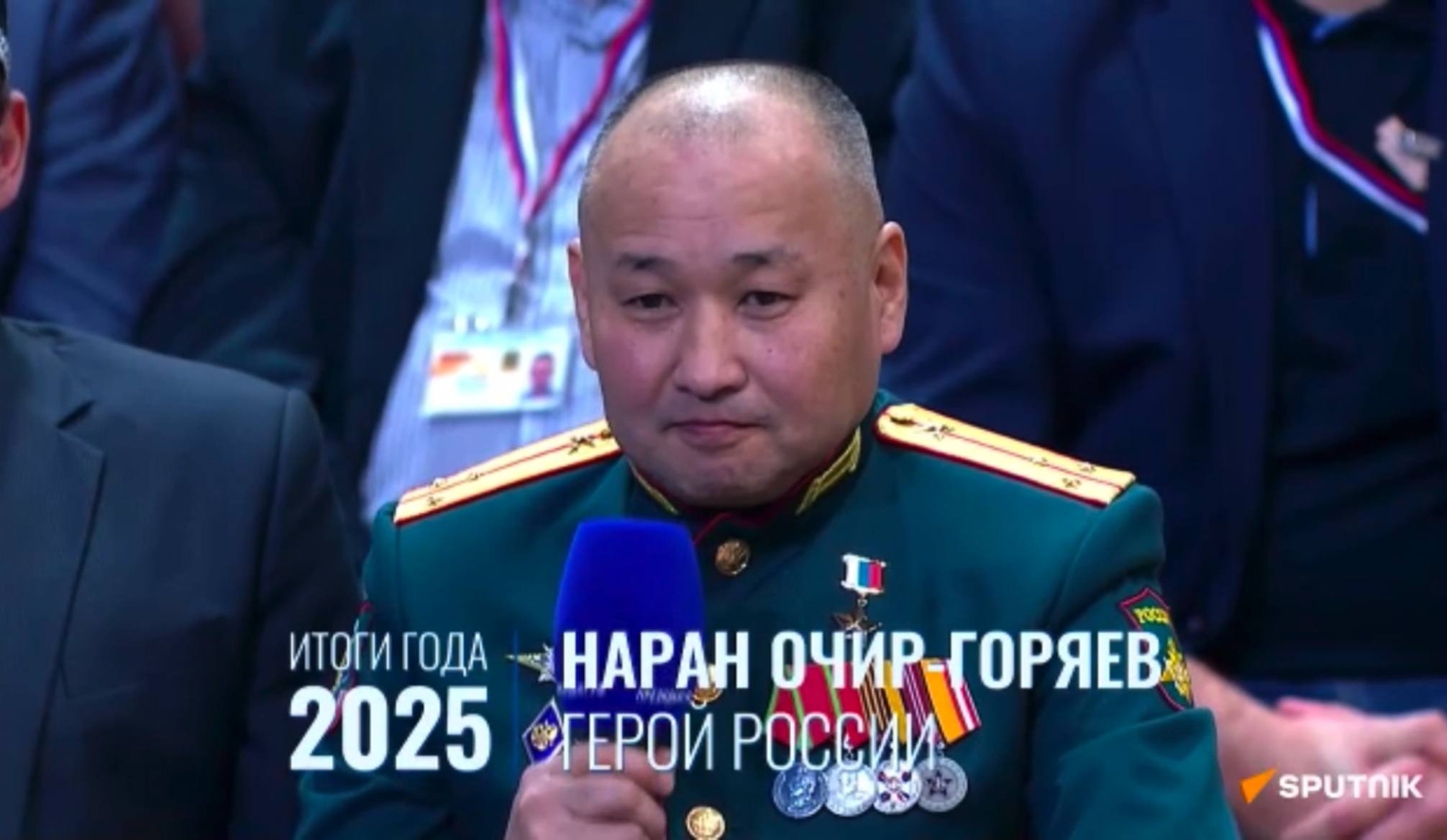 Первое слово Верховный главнокомандующий предоставил нашему земляку, Герою России, Нарану Очир-Горяеву, командиру штурмовой роты
