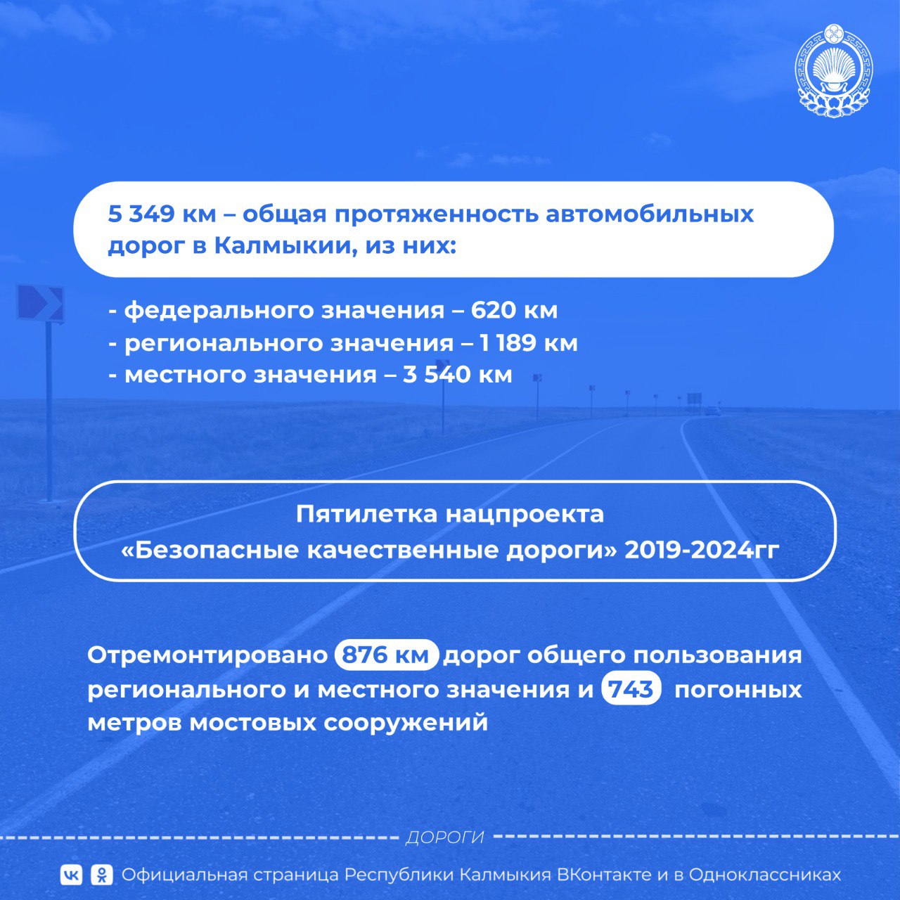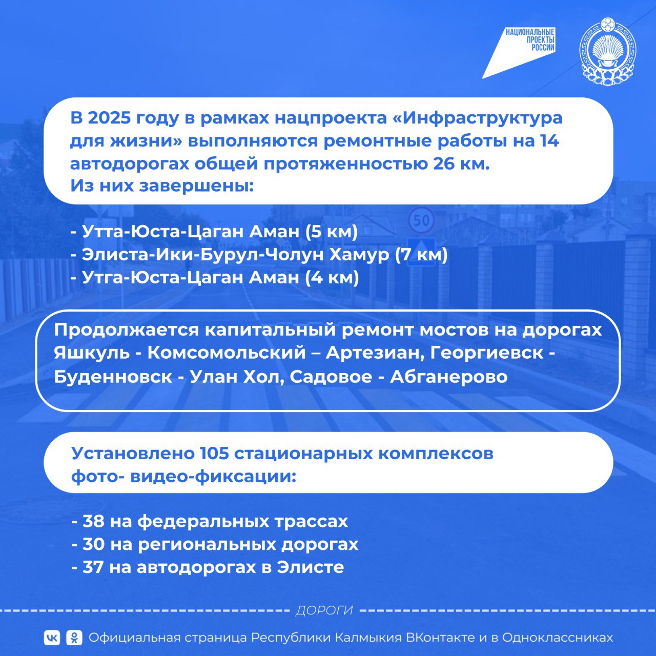 О том, что сделано в сфере дорожного хозяйства в Калмыкии в 2025 году – в карточках.
