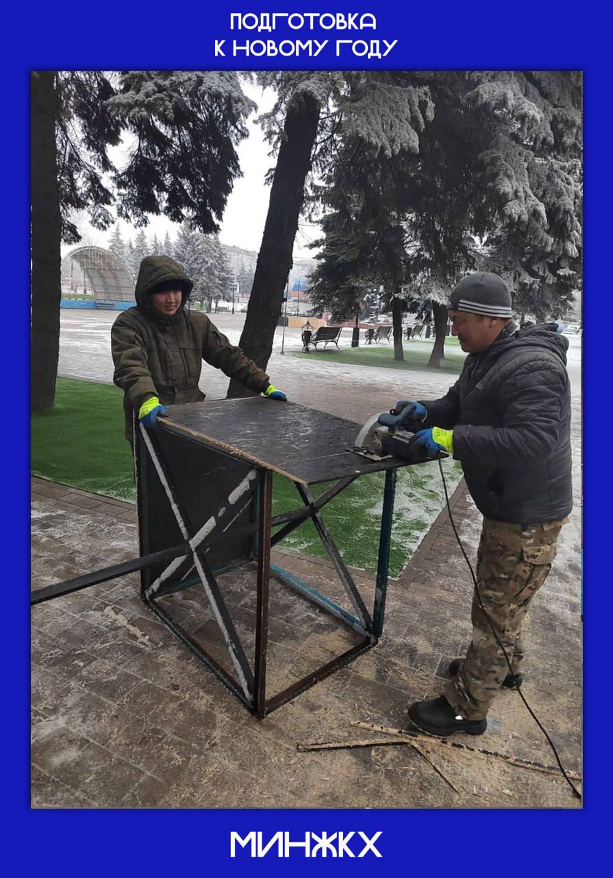 Наши специалисты перемещали бут с территории бывшего ЖКХ, обшивали тумбы и готовили их под елку. Они установили гирлянды и украсили главную городскую елку — работа выполнена аккуратно и в срок.