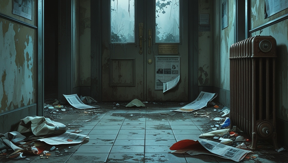 Что можно увидеть? Грязные полы, на которых еще до пандемии образовались пятна, граффити с нелестными комментариями и воспоминаниями о давно ушедших соседях, а также застарелый запах заброшенности и сырости. Медленно моргающая лампочка только добавляет в это дистопическое зрелище элемент ужасов.