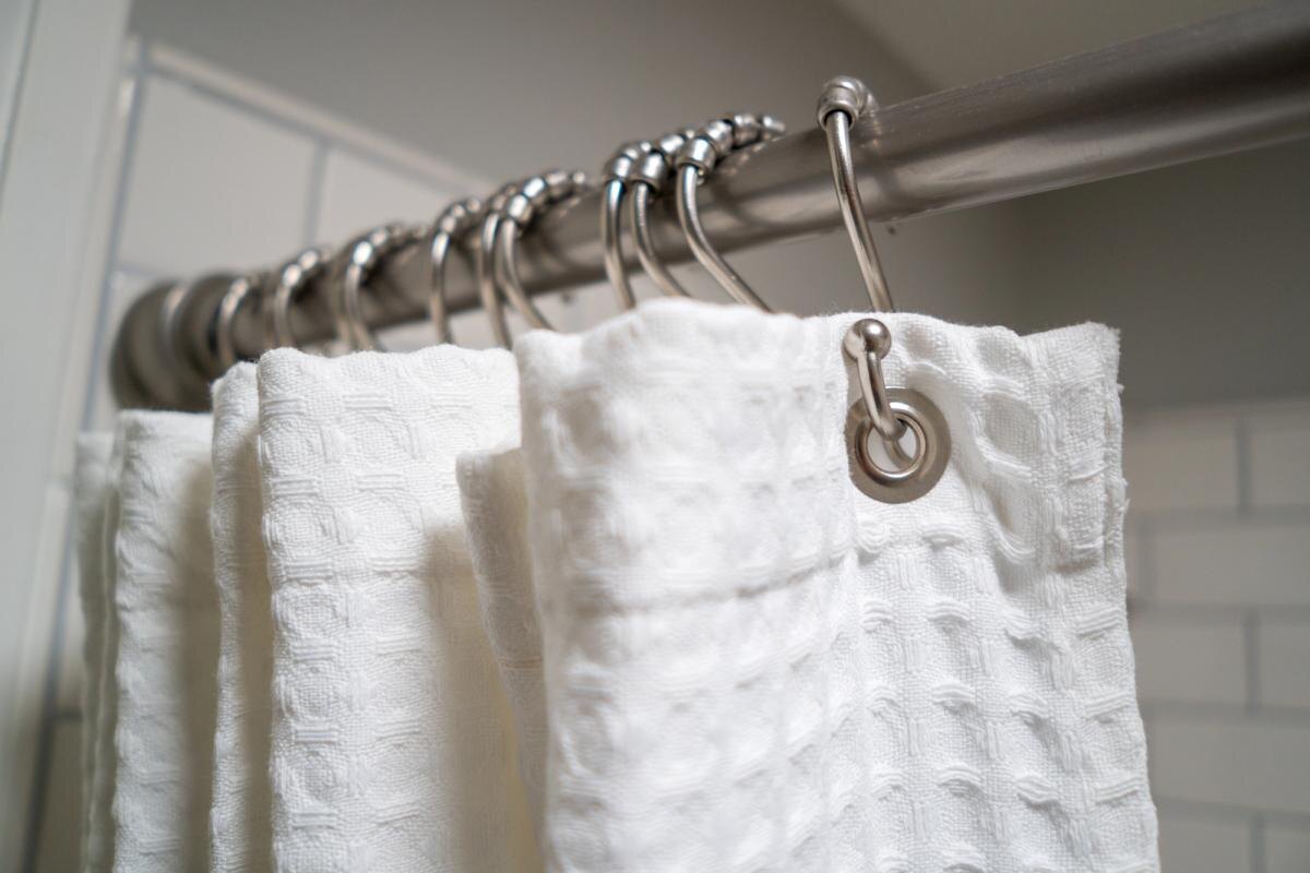 Отдельное внимание заслуживает способ очистки без демонтажа. Боуэн подсказывает, что для этого можно использовать раствор уксуса. Достаточно распылять его на шторку, аккуратно протереть с помощью щетки, а затем смыть. Не забудьте тоже замочить кольца для шторки в аналогичном растворе для повышения эффективности уборки.