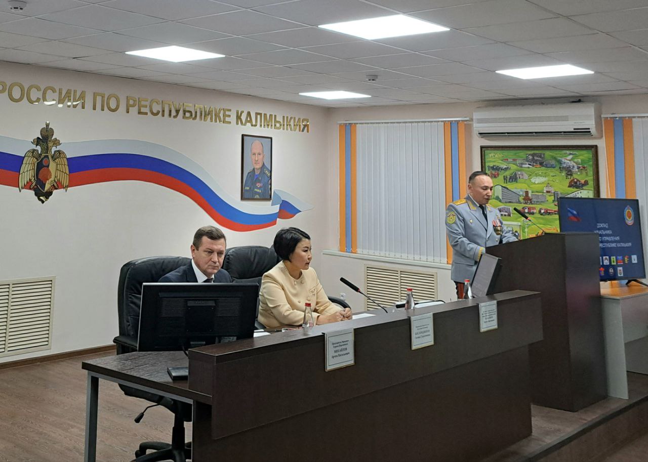 В Главном управлении МЧС России по Республике Калмыкия подвели итоги деятельности территориальной подсистемы Единой государственной системы предупреждения и ликвидации чрезвычайных ситуаций в 2025 году. В мероприятии приняли участие Председатель Народного Хурала (Парламента) РК Артем Михайлов, Председатель Правительства РК Гиляна Босхомджиева, руководители силовых ведомств региона.