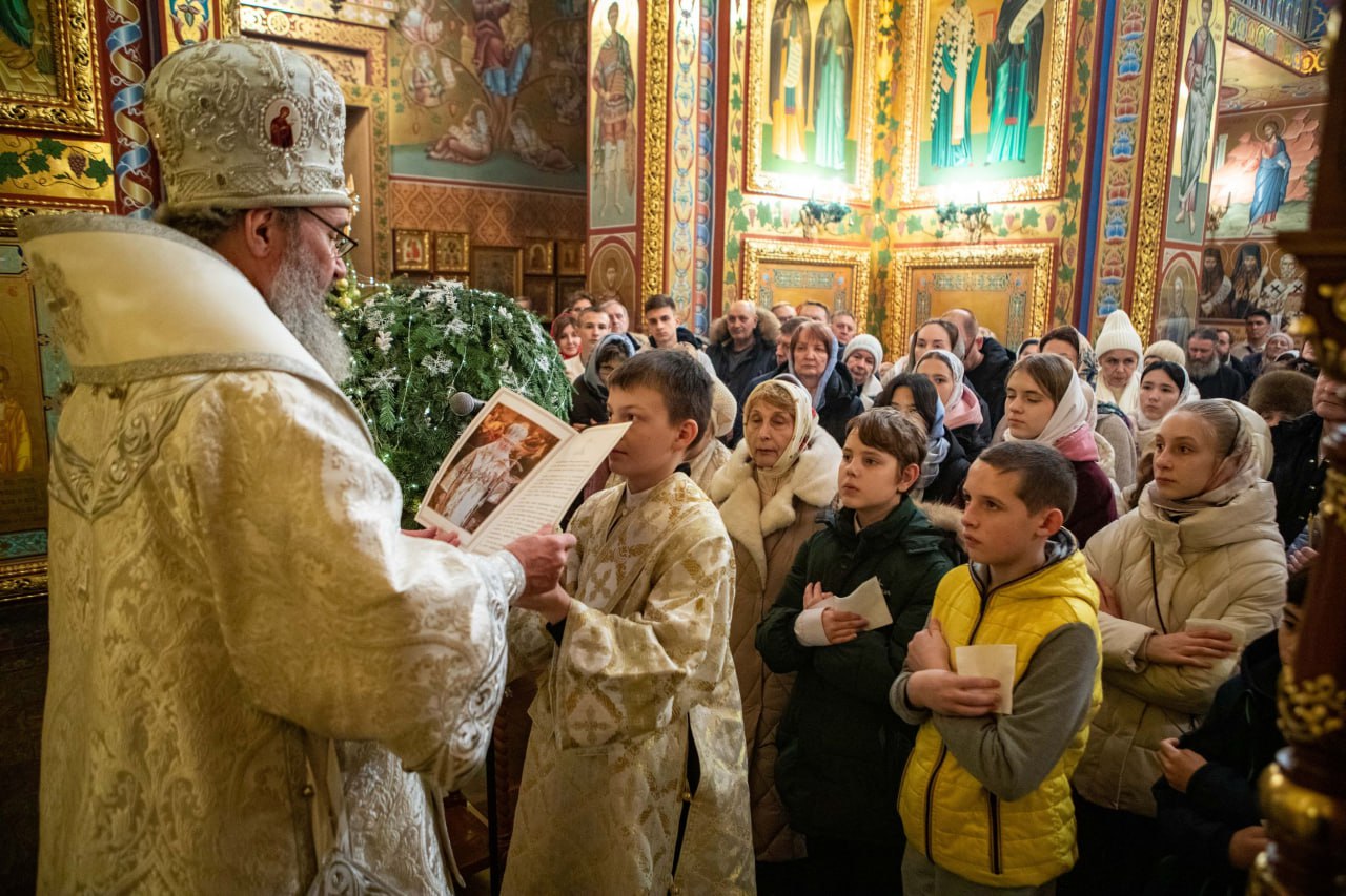 Он провел утреню и Божественную литургию святителя Иоанна Златоуста в сослужении клириков собора и епархии. Архиепископ прочитал праздничный канон, после чего священнослужители совершили помазание верующих освященным елеем. По окончании литургии было оглашено Рождественское послание Патриарха Московского и всея Руси.