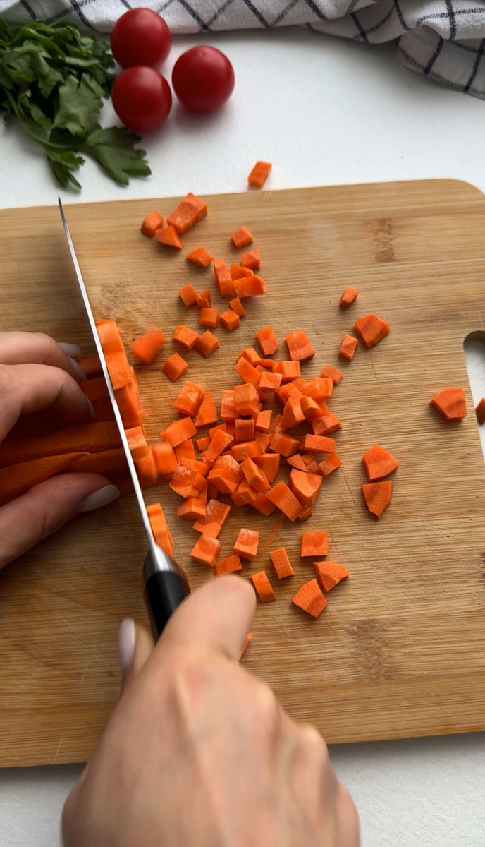 Сначала обжарьте на сливочном масле лук и морковь до легкой золотистой корочки. Это займет всего около 5 минут. Затем добавьте картофель, нарезанный кубиками, и продолжайте обжаривать еще 5–7 минут. После этого вскипятите воду, добавьте специи и готовьте под крышкой на среднем огне порядка 10 минут.