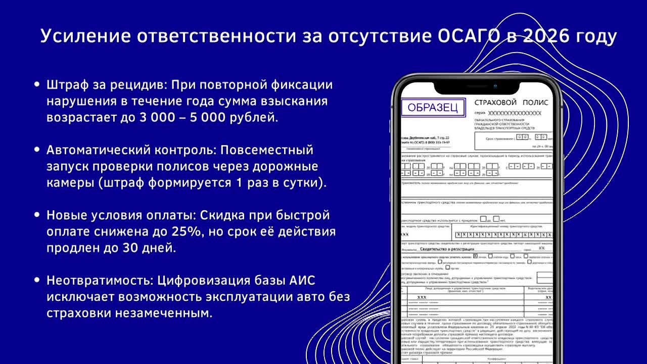 Проверка страховки становится автоматической. Штрафы за отсутствие полиса и их повторность значительно выросли.