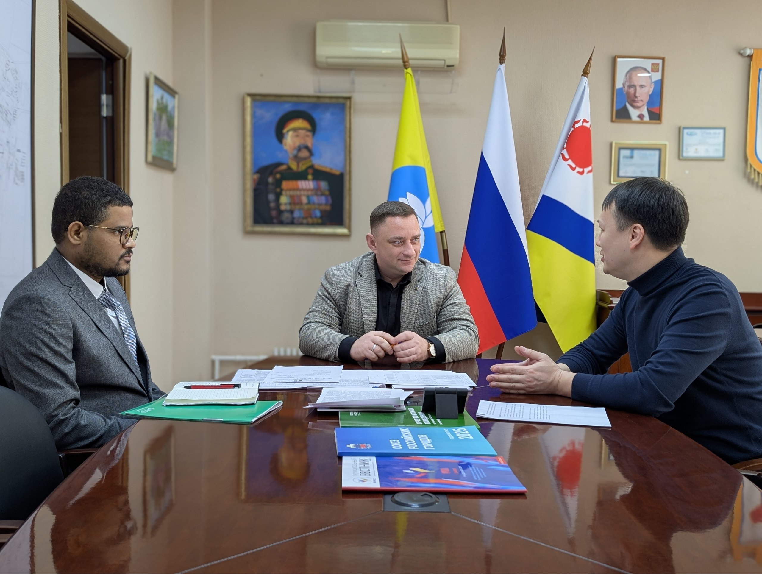 Развитие и укрепление международных связей обсудили с представителями КалмГУ им. Б. Б. Городовикова – моим коллегой, депутатом #ЭГС, начальником Управления профессионального и дополнительного образования Алдаром Конушевым и начальником Управления международной деятельности Ансельмом Хундайи.