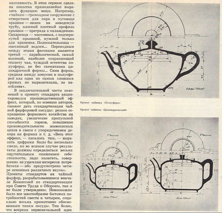 - Проекты рациональных форм посуды 1920-х, а также статья о Лучшая чайная пара 1971 года.