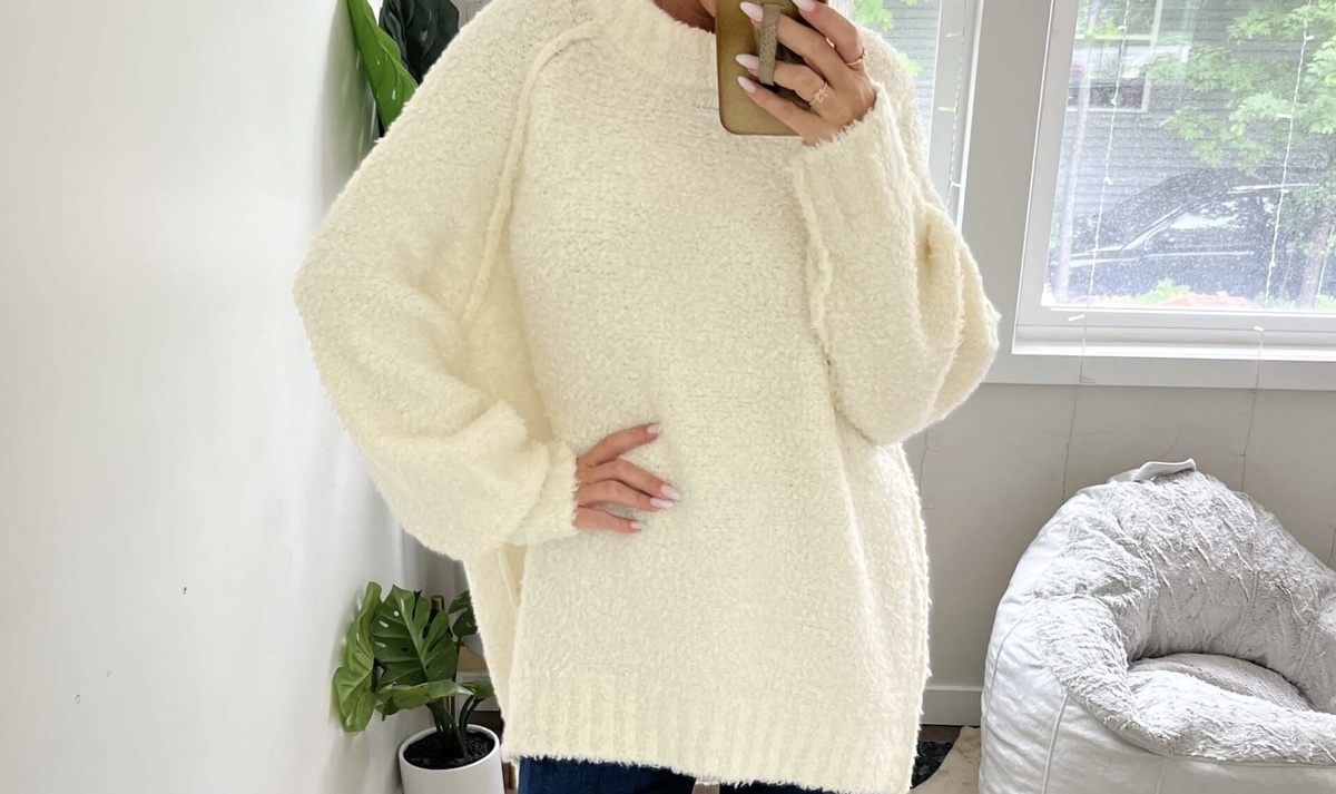Бесформенные одежды: Просторные свитера и балахоны не только скрывают фигуру, но и создают объемный силуэт, способный напоминать о временном аспекте, когда комфорт превышает стиль. Вместо этого лучше выбрать свитера с четким силуэтом, дополненные вертикальными линиями или акцентами на талии.