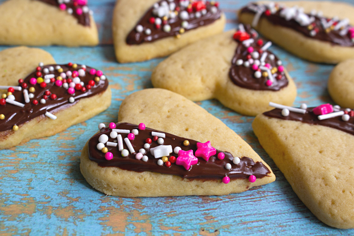 После выпекания дайте печенью немного остыть. Растопите шоколад и нанесите его на половинку печенья, посыпая сверху кондитерской посыпкой. Наслаждайтесь кулинарным шедевром, который станет настоящим украшением любого стола!