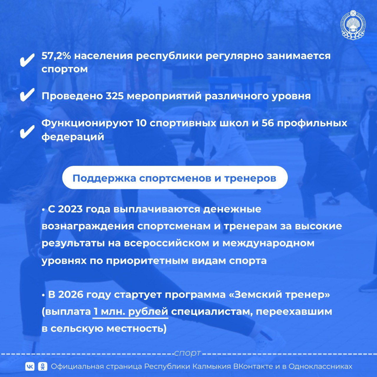 19 января зарядку провела Полина Бамбаева Хонгоровна — мастер спорта по художественной гимнастике, чемпион ЮФО в групповом упражнении, серебряный призёр ЮФО, многократный призёр всероссийских соревнований и одна...