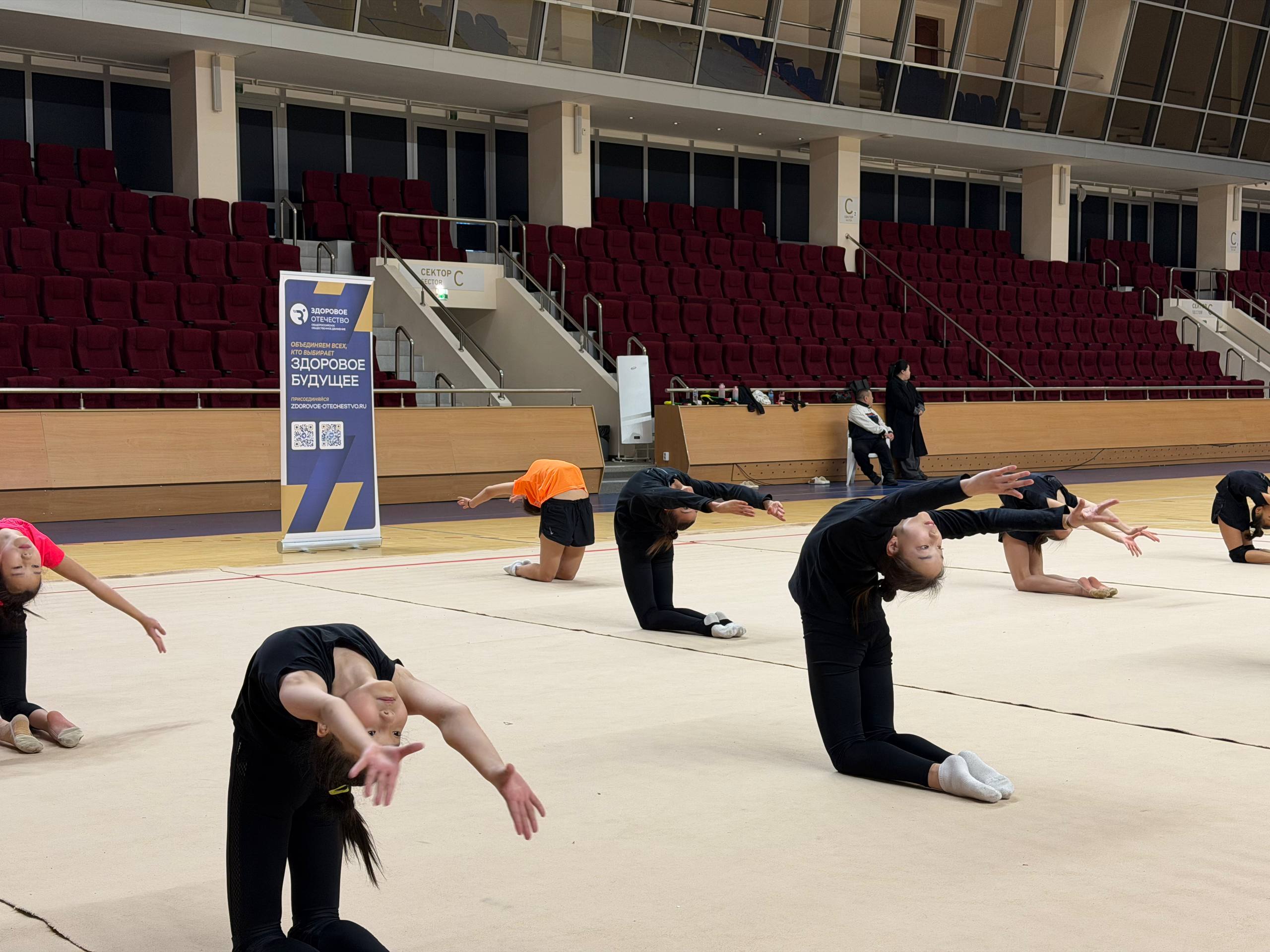 19 января зарядку провела Полина Бамбаева Хонгоровна — мастер спорта по художественной гимнастике, чемпион ЮФО в групповом упражнении, серебряный призёр ЮФО, многократный призёр всероссийских соревнований и одна из ведущих спортсменок региона.