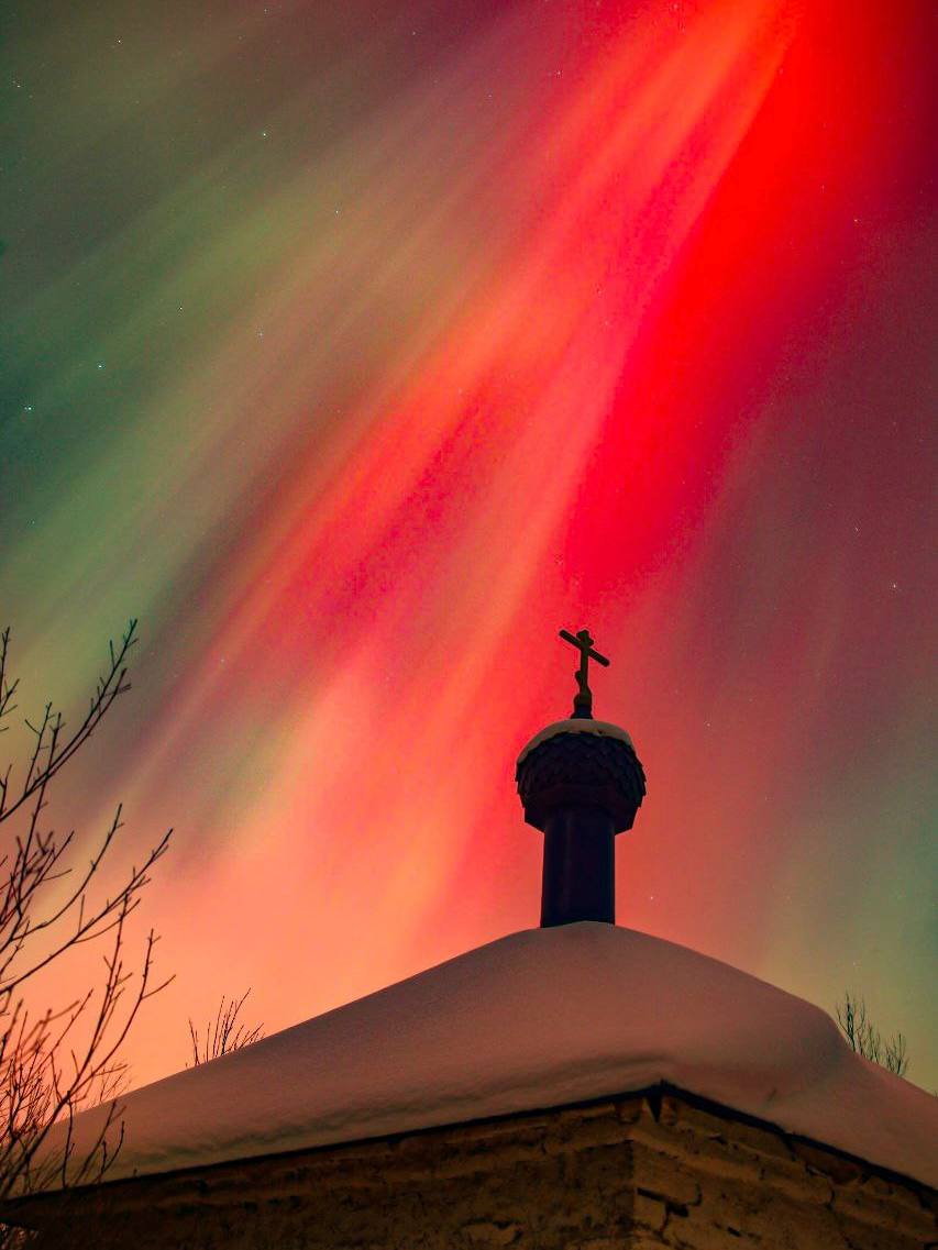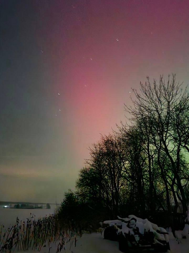 Мощная магнитная буря подарила северное сияние жителям России, Беларуси, Исландии, Германии, Латвии и других стран.