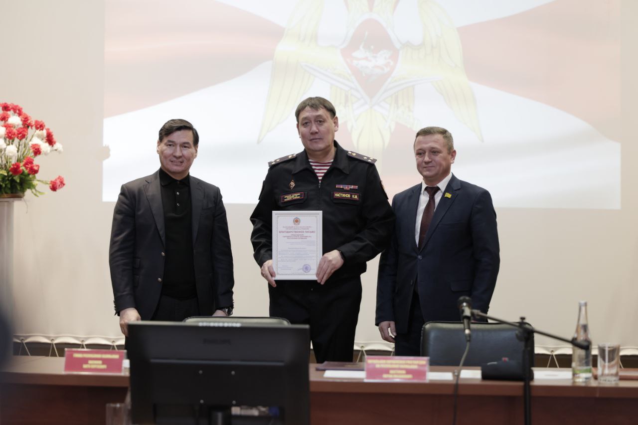 Глава Республики Калмыкия Бату Хасиков, Председатель Народного Хурала (Парламента) РК Артем Михайлов, руководители силовых структур региона посетили Управление Росгвардии по РК, где были подведены итоги служебно-боевой деятельности ведомства в 2025 году.