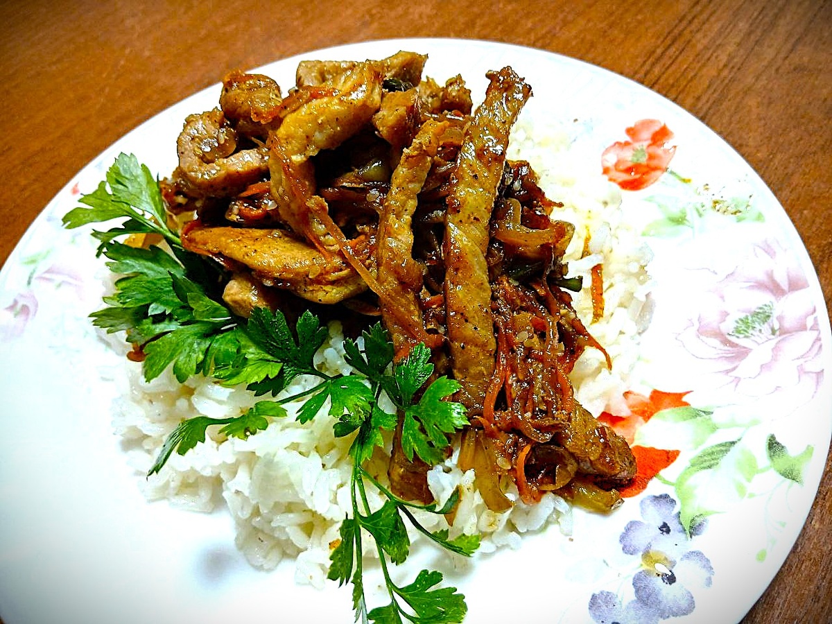 - Свинина без кости – 700 г, нарезанная тонкими полосками