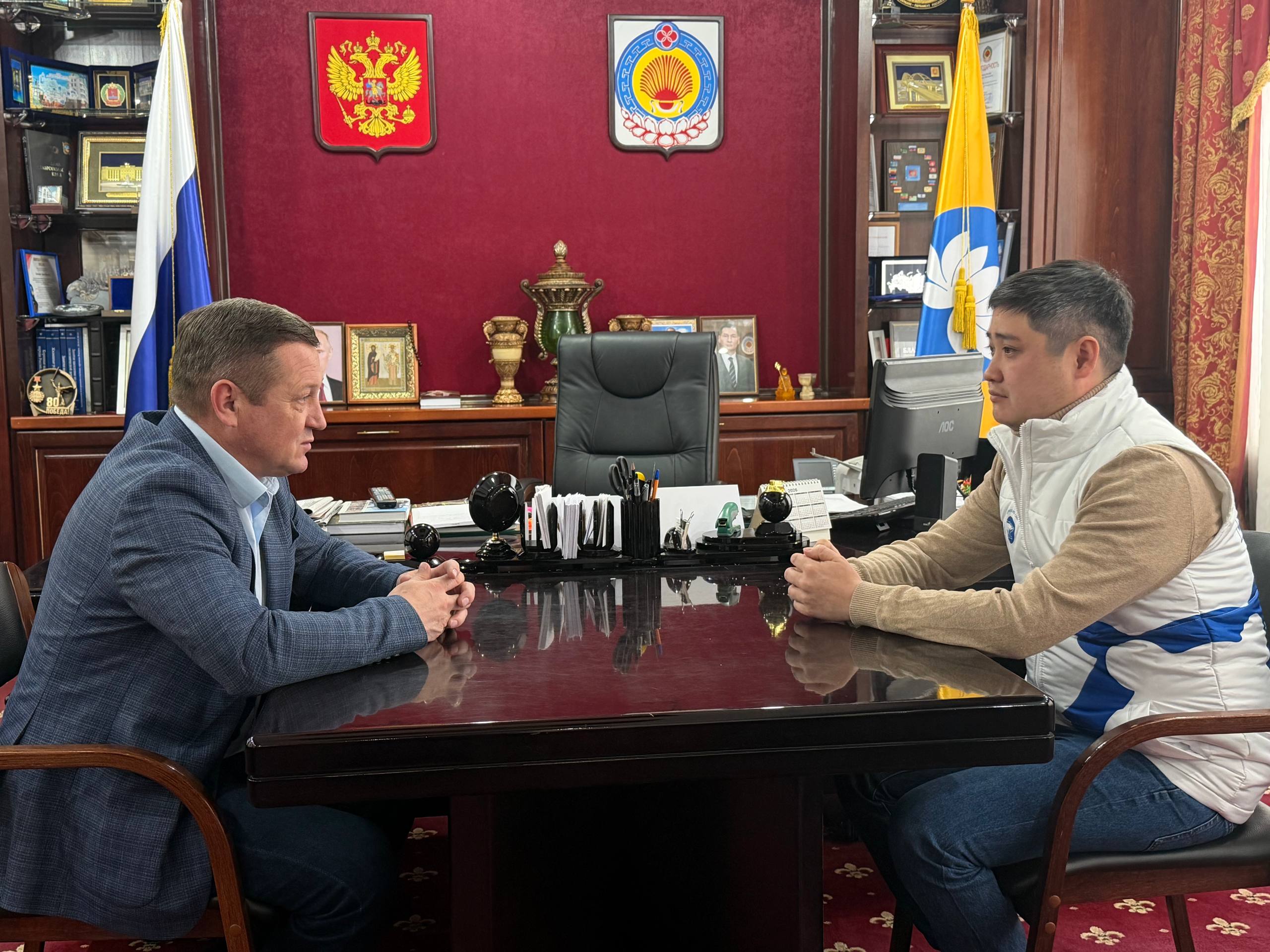 Председатель Народного Хурала (Парламента) РК, член Президиума регионального политсовета КРО ВПП «Единая Россия» Артем Михайлов провел рабочую встречу с новым руководителем Штаба общественной поддержки партии в регионе Александром Хулхачиевым.