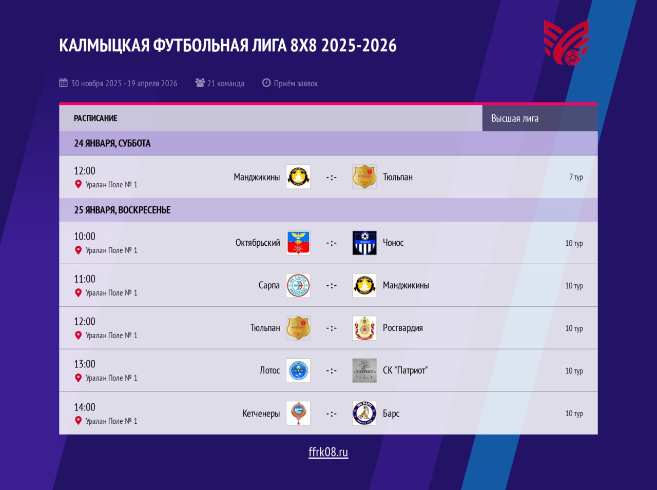 В выходные 24-25 января играем 10 тур, а также перенесенную игру 7-го тура.