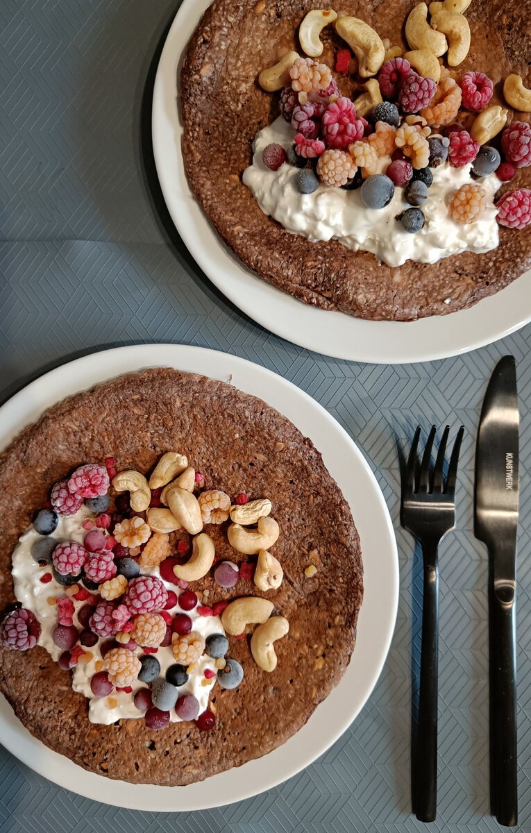 Приготовление простое: овсяные хлопья измельчаются с яйцами, молоком, щепоткой соли и какао. Затем добавляются семена чиа. Дать тесту постоять 10-15 минут, чтобы семена впитали влагу и масса загустела. В ожидании можно насладиться чашечкой свежесваренного кофе или чая.
