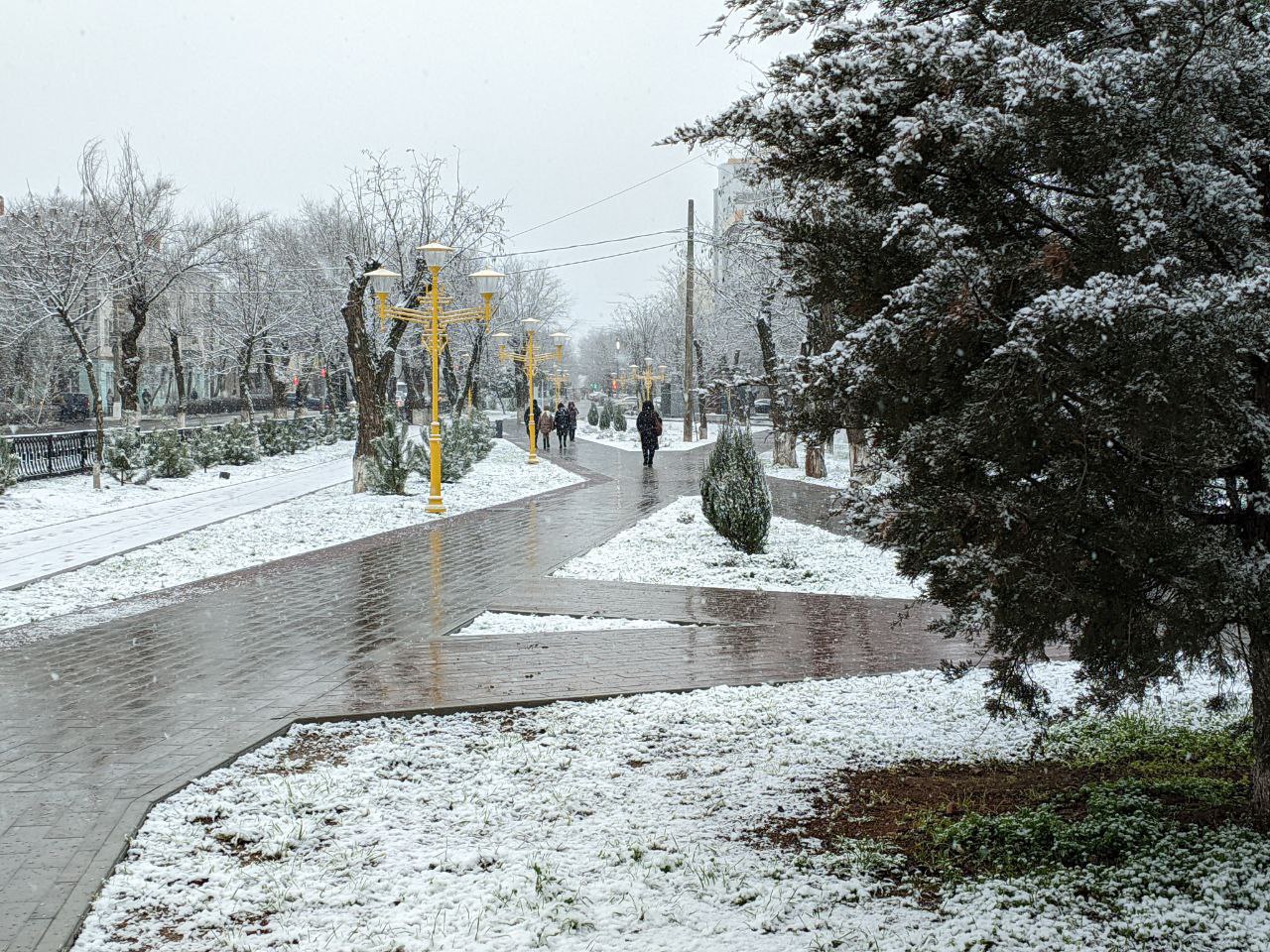 В республике ожидается облачная погода, в большинстве районов небольшой и умеренный снег. Местами сильный снег, метель, в отдельных районах изморозь, гололед. На дорогах гололедица, местами заносы. Ветер восточной четверти 7-12 м/с.