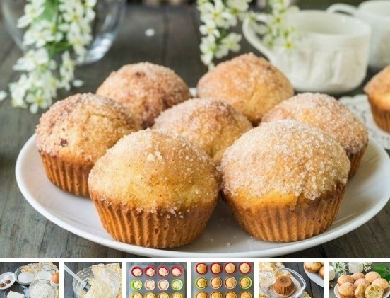 Разогреваем духовку до 175 градусов и выпекаем наши маффины около 25 минут или до появления золотистой корочки. Проверяем готовность с помощью зубочистки и, как только они остынут, обваливаем верхушку в смеси из оставшегося сахара и корицы.