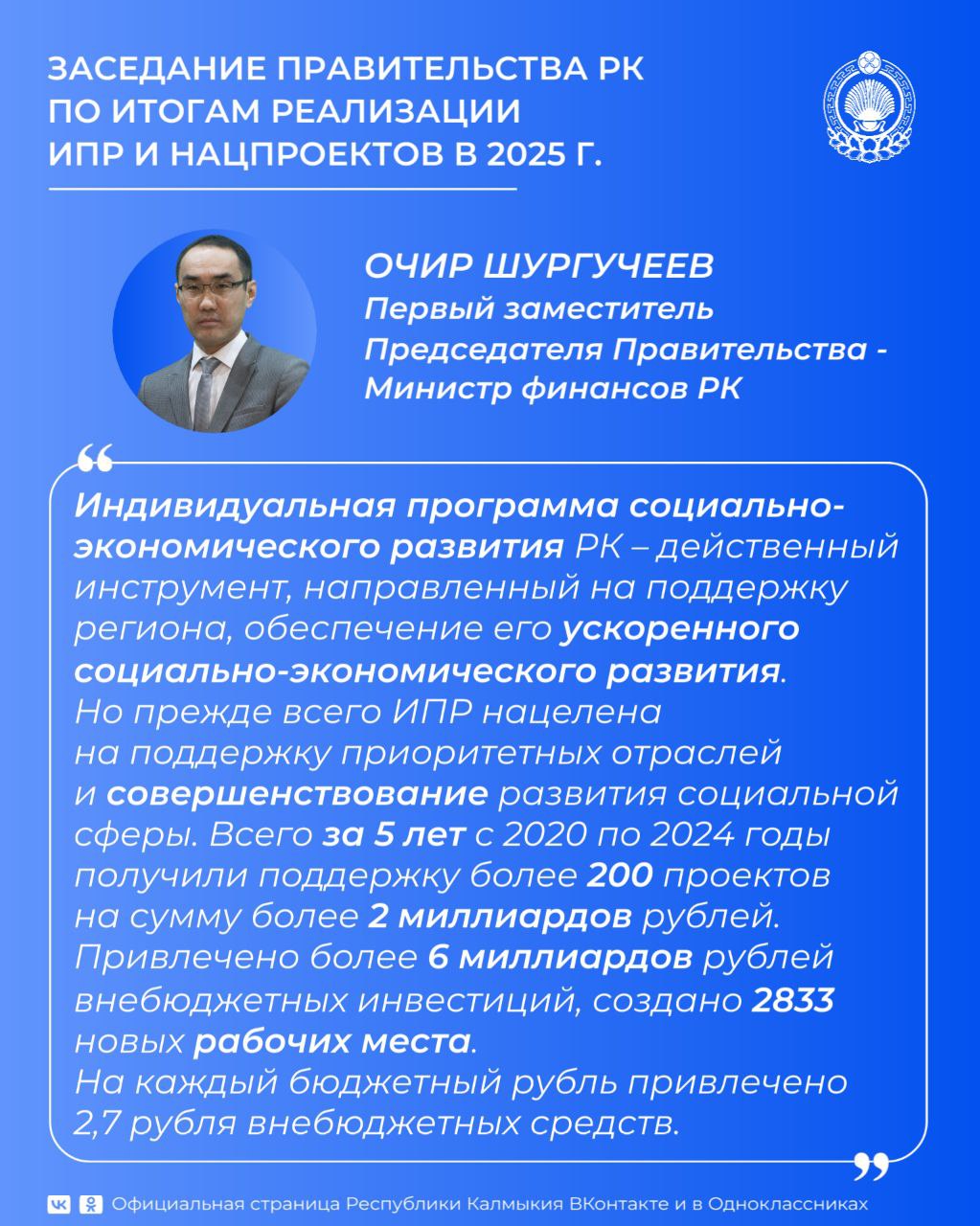На сегодняшнем заседании Правительства Калмыкии члены кабмина выступили с отчетными докладами о реализации мероприятий Индивидуальной программы социально-экономического развития республики в 2025 году.