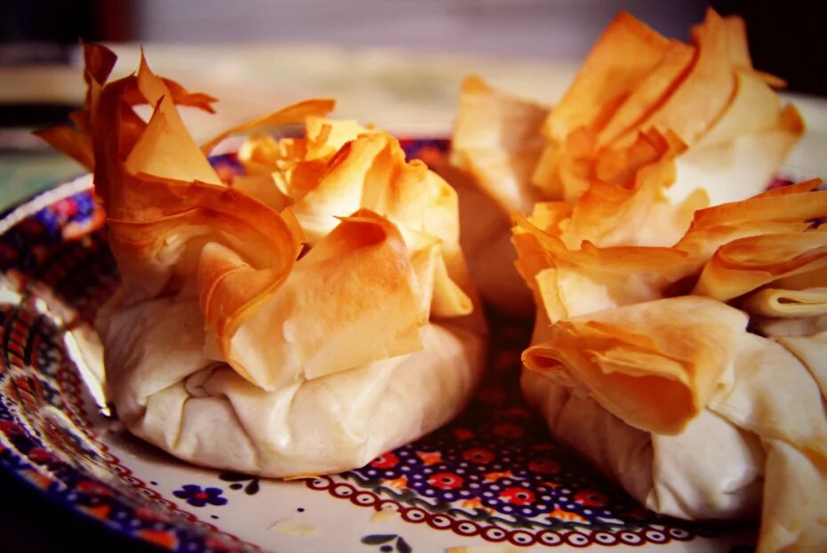 Запекают до золотистой корочки примерно четверть часа. Готовые мешочки sous-chef подают сразу, чтобы сохранить хрустящую текстуру и аромат.