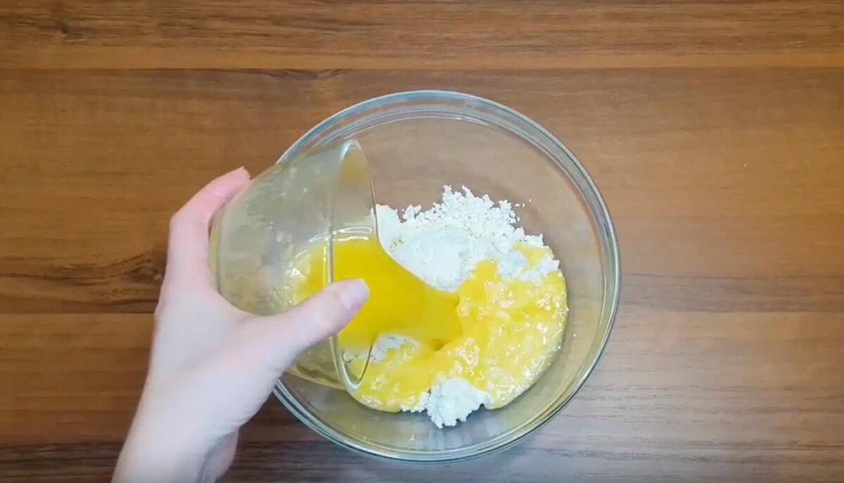 Ингредиенты — творог 200 г, мука 200 г, сливочное масло 100 г, сахар 100 г, разрыхлитель 1 ч. л. Все это превращается в гладкое тесто, которое не липнет к рукам после замеса.