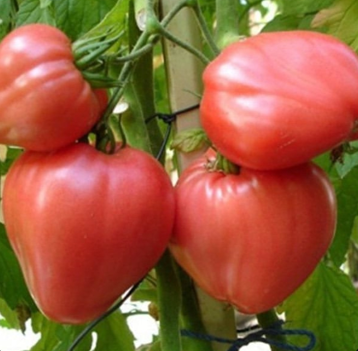 Популярен благодаря своей вкусной сахаристо-мясистой мякоти и малиновому цвету. Урожайность впечатляет — куст покрыт большими "сердечками".