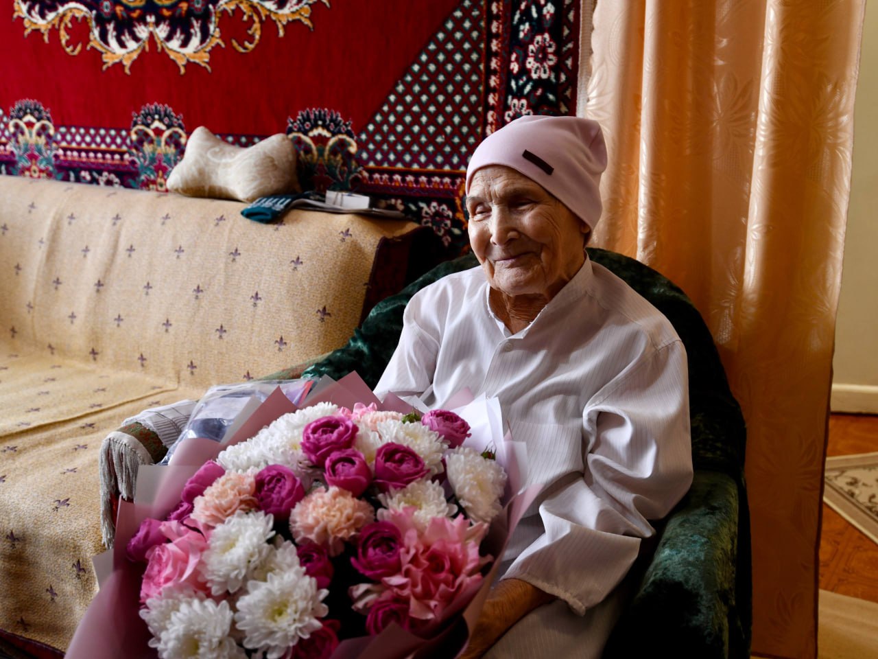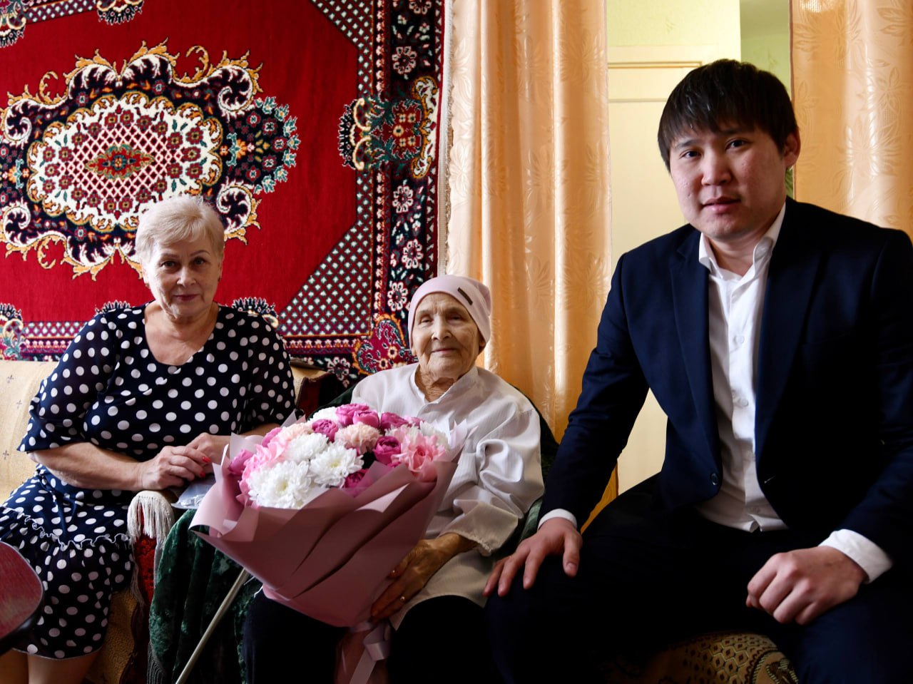 Поздравил с днем рождения и вручил персональное поздравление от Президента России Владимира Путина и Главы Республики Калмыкия Бату Хасикова Заместитель главы Администрации города Элисты Андрей Сасыков.