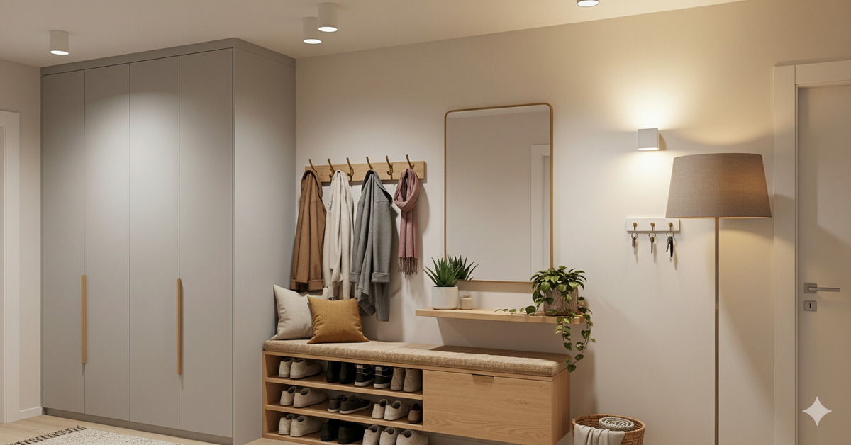 Прихожая — это первое, что видят гости, и место, где скапливаются вещи, часто оставшиеся у двери.