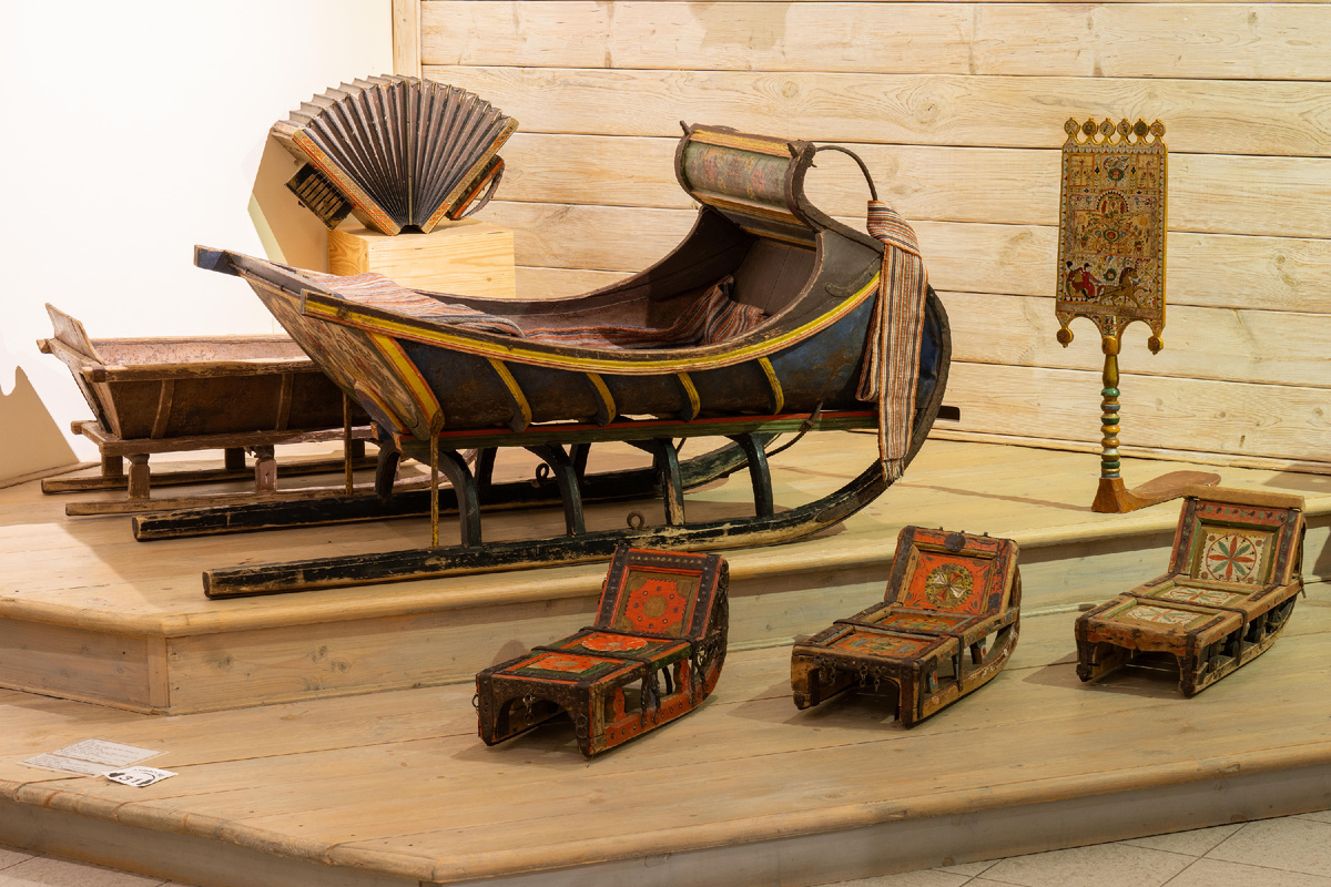 В музейном комплексе «Конный двор» выставлена яркая экспозиция «Мир русской деревни». Здесь можно увидеть красочные сани, привезённые с Русского Севера, украшенные ручной росписью и домоткаными попонками. В прежние времена такие сани наряжались для больших праздников, создавая настоящее зрелище на потеху публике.