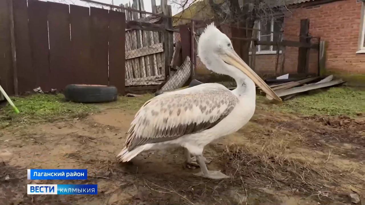 Замерзшего кудрявого пеликана спасла жительница поселка Улан-Хол Лаганского района.