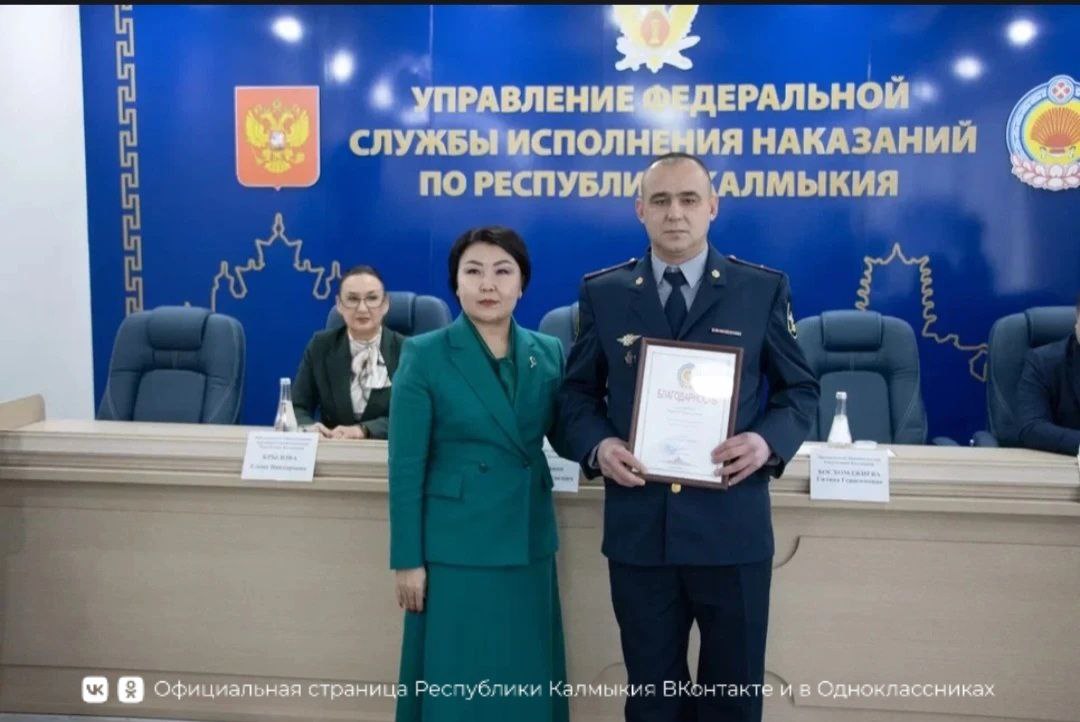 В завершении первой части коллегии, Премьер-министр РК Гиляна Босхомджиева и руководитель регионального ведомства Ибрагим Альсултанов вручили сотрудникам УИС благодарности Главы Республики Калмыкия и Правительства Республики Калмыкия, а также ведомственные награды.