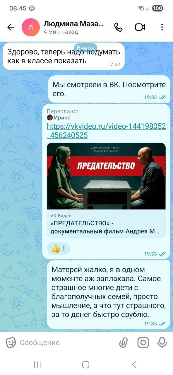 Доброе утро! Я сначала посмотрела фильм сама. Вчера смотрела фильм с сыном. Рассказала про него классному руководителю, она теперь будет думать, как показать. Элиста МБОУ СОШ 10.