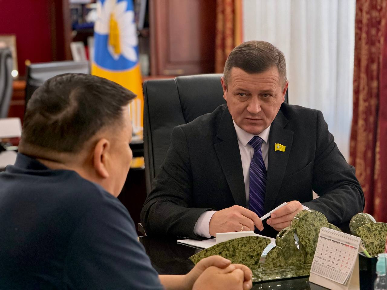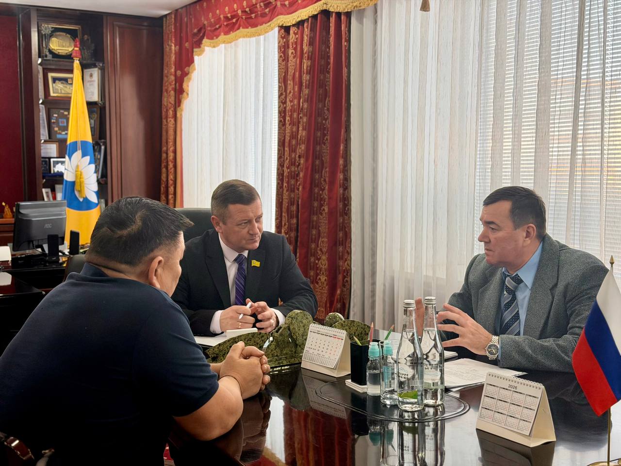 10 февраля на личный прием к Председателю Народного Хурала (Парламента) Республики Калмыкия Артему Михайлову обратился участник специальной военной операции. В ходе встречи заявитель поднял вопросы, связанные с реализацией права на получение земельного участка.
