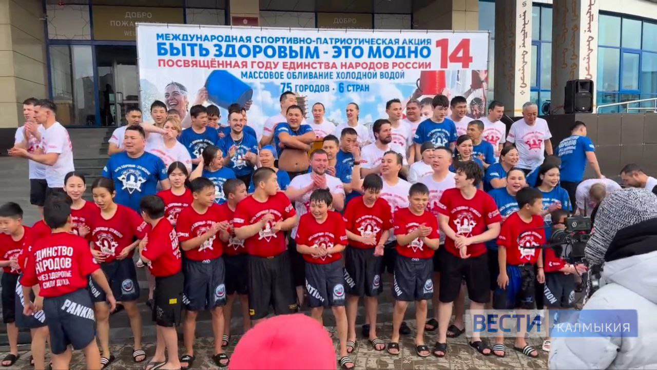 В Элисте состоялось массовое обливание холодной водой, приуроченное к Году единства народов России. Акция объединила более 60 городов России и 10 дружественных стран в формате телемоста.