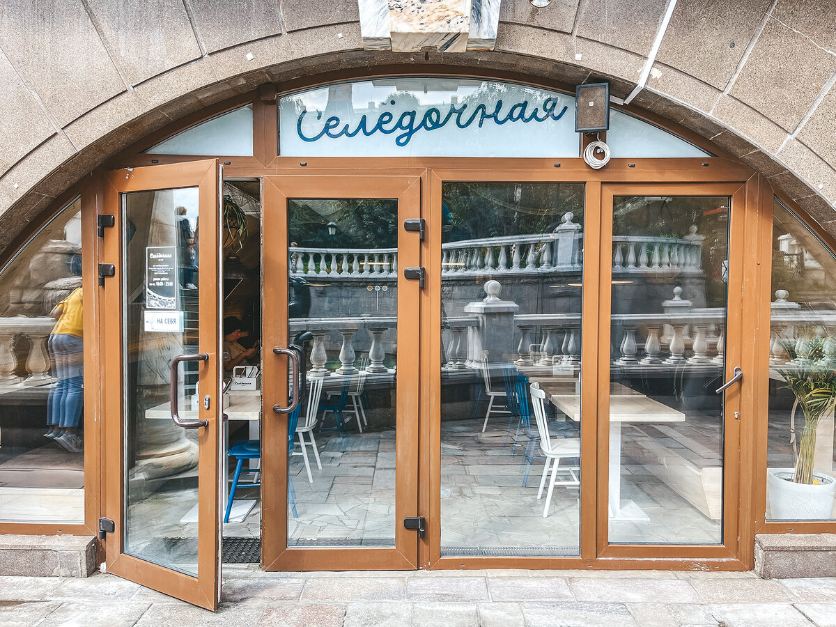 Меню включает не только традиционные рыбные блюда, но и такие оригинальные позиции, как трофейный суп и намазки. Заведующие «Селёдочной» — команда, стоящая за уютными заведениями «Вареничная №1» и «Хачапури», которые также находятся неподалеку от Красной площади. Второй филиал открылся недавно в районе ВДНХ.