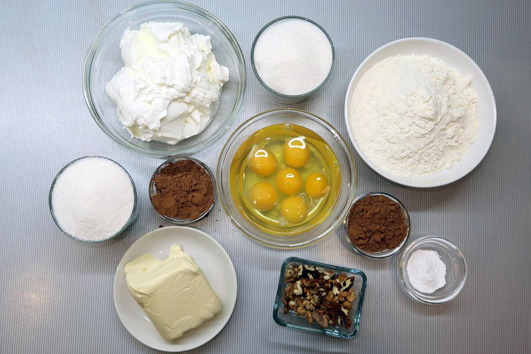 Приступим к процессу! Сначала необходимо приготовить бисквитное тесто. В глубокой чаше смешайте яйца с сахаром и взбейте до получения пышной массы. После этого добавьте просеянную муку, разрыхлитель и какао, все тщательно перемешайте.