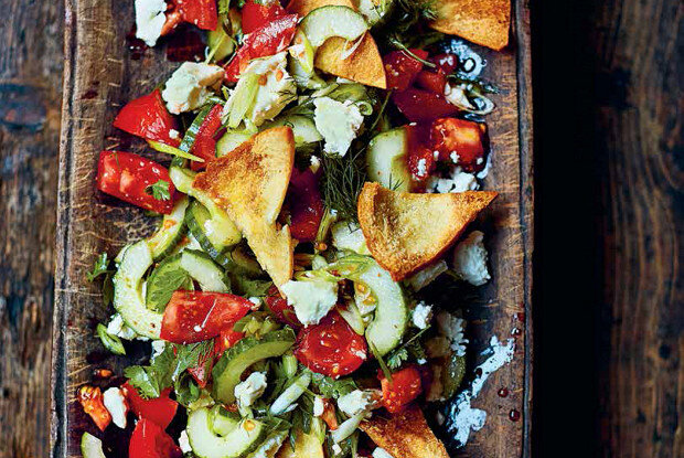 Для приготовления заправки смешайте лимонный сок, уксус, сахар и молотый кориандр в глубокой миске. Постепенно добавляйте оливковое масло, взбивая венчиком до получения однородной массы. Не забудьте добавить соль по вкусу.Разогрейте духовку до 190 градусов. Разделите лепешки питу на две тонкие круглые части и нарежьте их треугольниками. Смажьте их оливковым маслом и запекайте примерно 10 минут, пока они не станут золотистыми и хрустящими.В большой миске смешайте нарезанные помидоры, огурцы (предварительно удалив семена) и зеленый лук. Добавьте подготовленную заправку и зелень. Посыпьте салат раскрошенной фетой, сверху выложите хрустящие треугольники питы и аккуратно перемешайте. Подавайте немедленно, дополнительно предложив горячие лепешки нон.Этот салат станет отличным дополнением к любому обеду или ужину. Приятного аппетита!