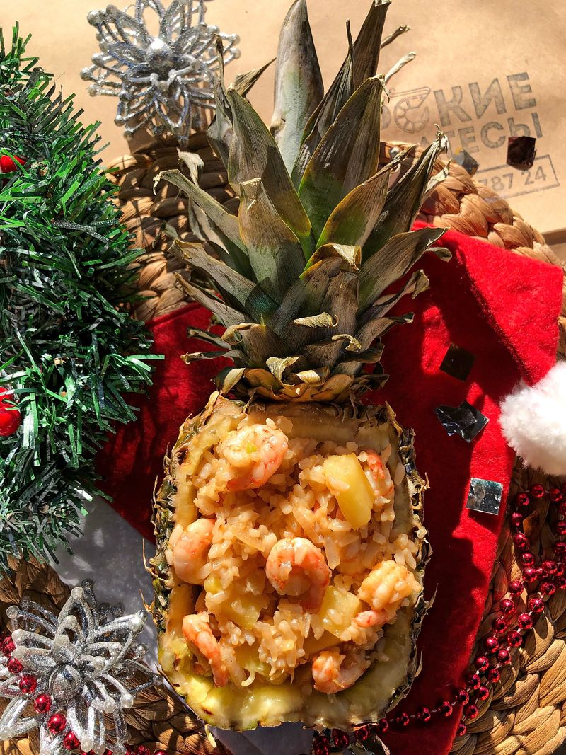 Это блюдо не только поражает своим невероятным вкусом, но и впечатляет подачей — запеченные креветки в ананасе станут настоящим украшением любого стола.