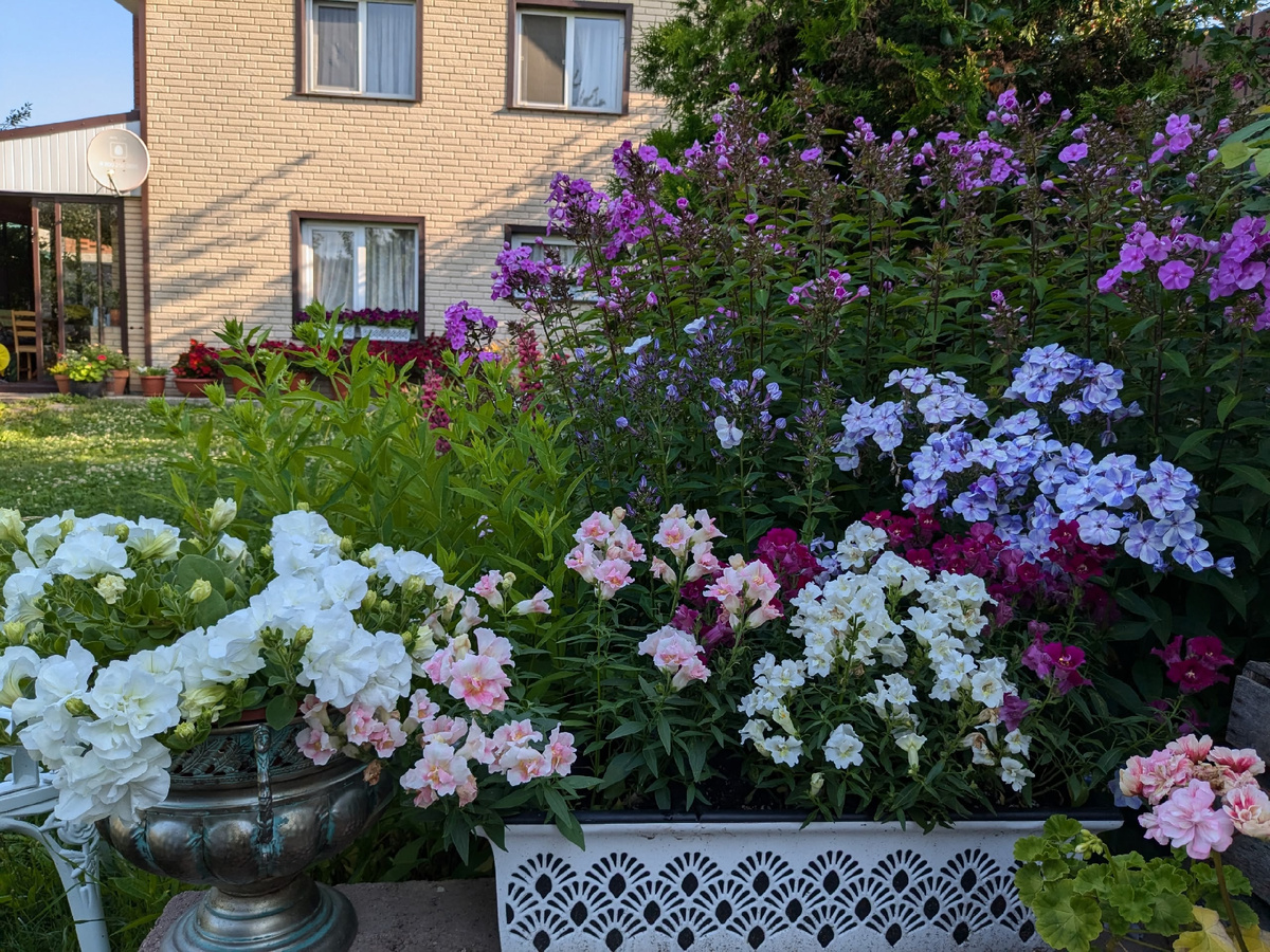 Сейчас львиный зев предстает в ярком свете на крыльце сарая, несмотря на его низкорослость, растения выглядят аккуратно и гармонично. Созданная композиция из трех оттенков расцветки создает привлекательный визуальный эффект.